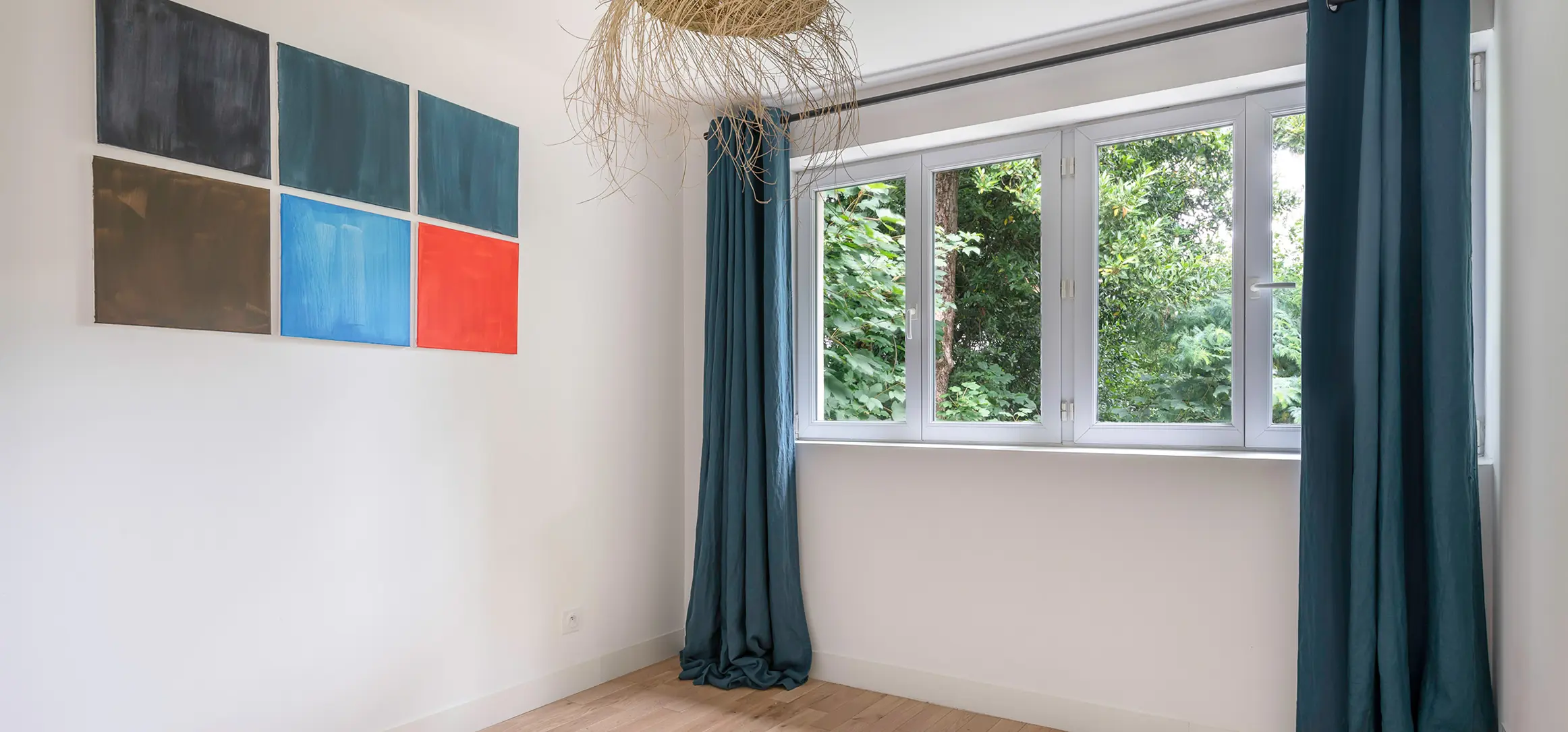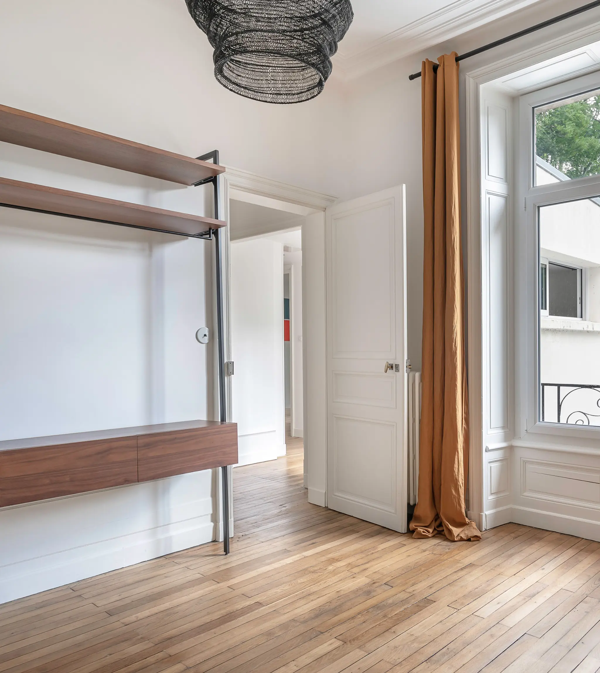 L’ensemble des volumes a été repensé pour accueillir trois chambres, une salle de bain et une généreuse pièce de vie, tout en conservant les éléments d’origine, parquet en chêne, moulures, cheminées en marbre et hauteur sous plafond.