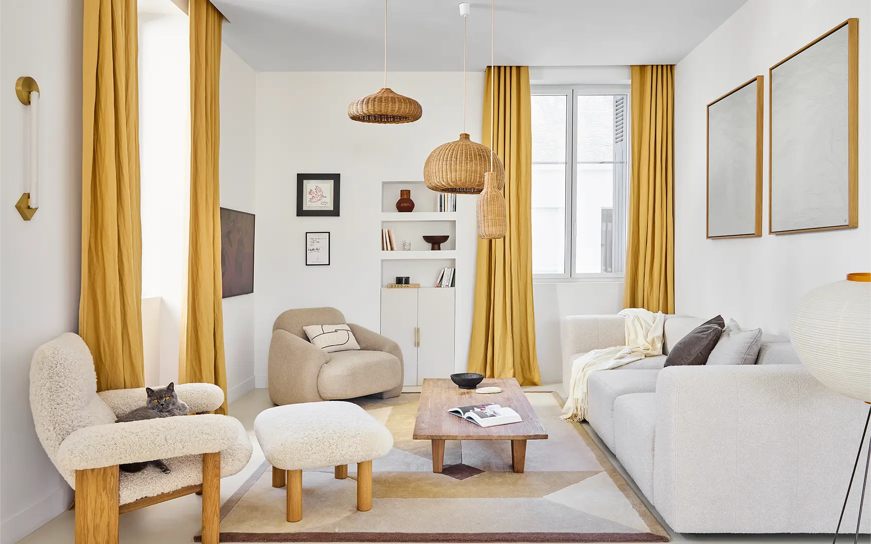 Les matériaux choisis tels que le béton ciré ou le bois massif instaurent une atmosphère chaleureuse et naturelle.